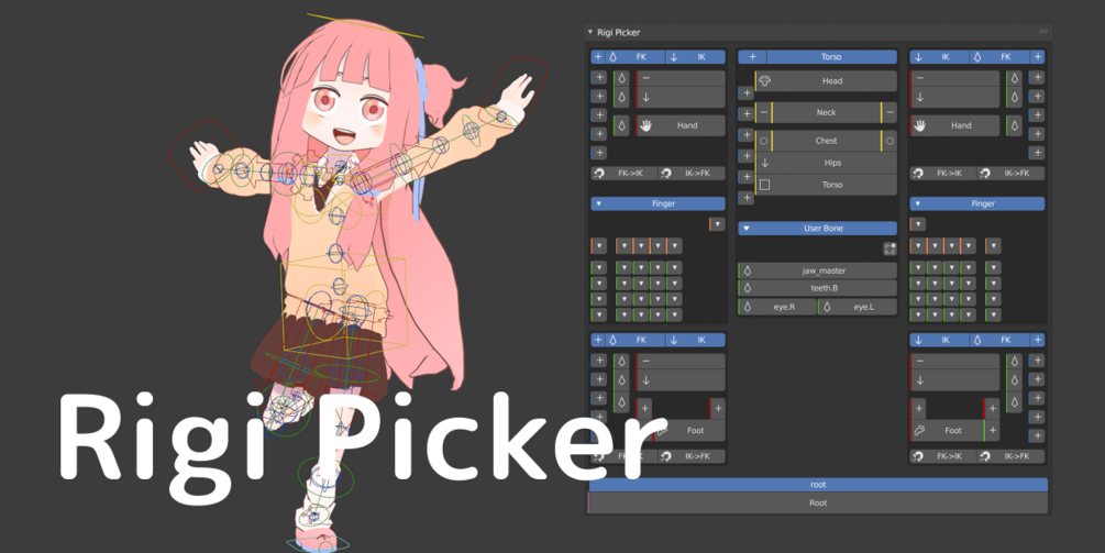 Rigify や自分のリグのボーン選択を補助するピッカーアドオン