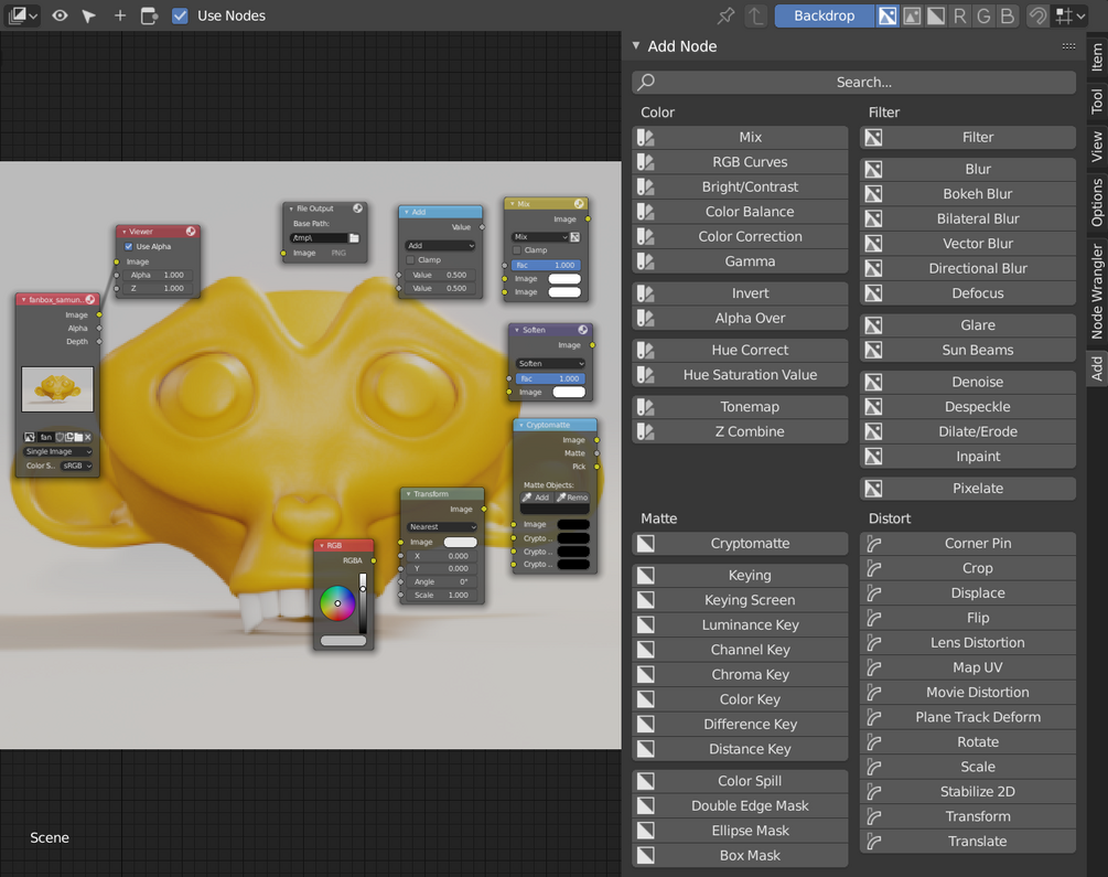 It supports shader nodes and composite nodes.